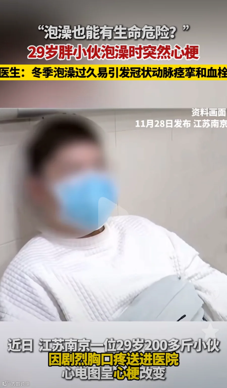 有个29岁的年轻小伙,冬季泡澡时间太长,突发心梗。