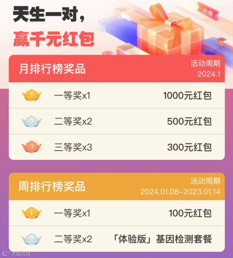 通过「天生一对指数」小工具进行匹配,指数排名靠前的用户每周每月都有红包拿!!