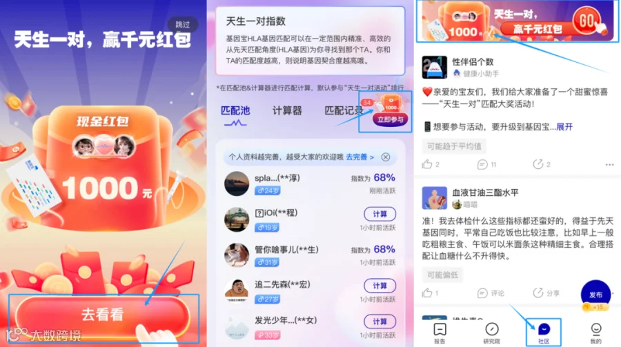 只要你将基因宝App更新到最新版本(v7.0.8),在开屏页面、小工具旁边、「社区」置顶等入口都可以参与活动👇