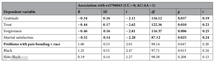 截图自Makhanova, A., McNulty, J. K., Eckel, L. A., Nikonova, L., Bartz, J. A., & Hammock, E. A. (2021). CD38 is associated with bonding-relevant cognitions and relationship satisfaction over the first 3 years of marriage. Scientific reports, 11(1), 1-13.