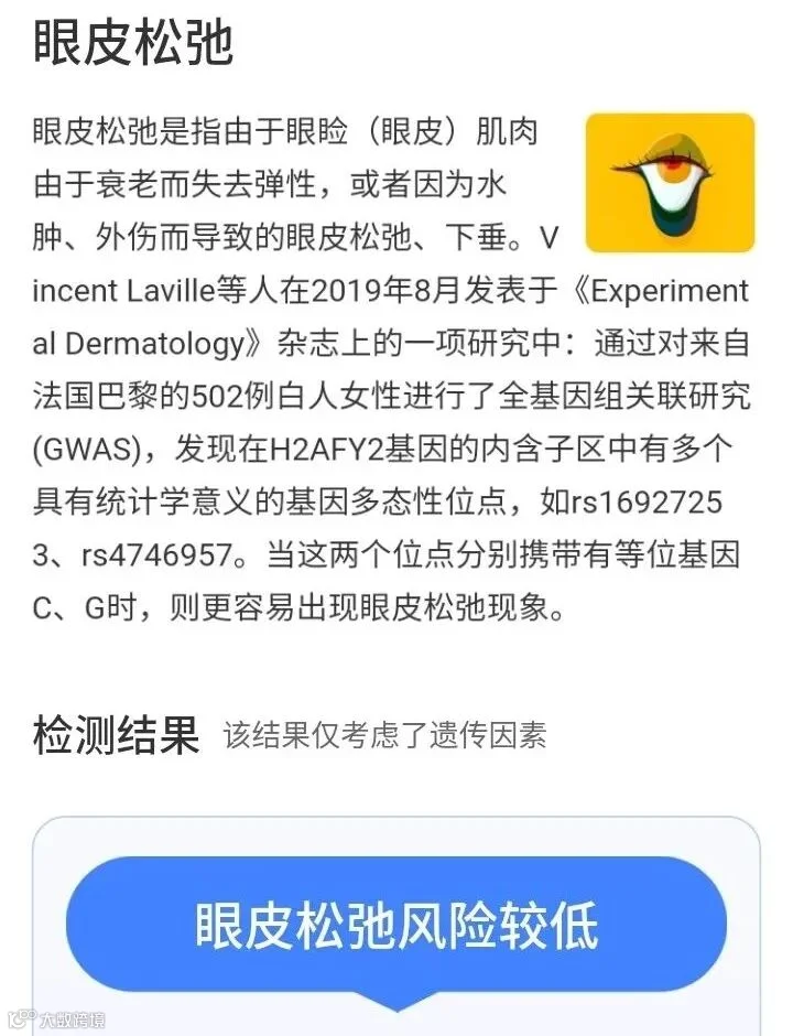「眼皮松弛」风险较低