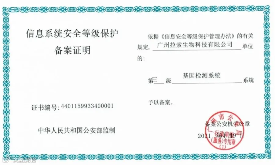 一直以来,基因宝都在努力成为行业中最专业的居家基因检测。 从实验室、到芯片、再到团队,无一不在做出成绩。一次次向我们的用户证明,你们的选择是正确的。 感谢所有用户的信任! 不过,基因宝不想把「专业」仅体现在准确的检测结果上。如何专业的去保护每一个用户的数据安全和个人隐私,也是我们日常工作的重中之重。 终于,基因宝Genebox 凭借自身过硬的技术实力和严格的管理制度,在本月正式通过由国家公安部核准颁发的「国家信息系统安全等级保护」三级审核认证,也是第一家通过「三级等保」的基因检测公司。今后基因宝在信息安全领域将接受权威部门更加严格的监管。 《信息安全等级保护管理办法》作为中国权威的信息产品安全等级资格认证,是由公安部、国家保密局、国家密码管理局、国务院信息工作办公室联合制定。等级保护对象分为五个级别,由一到五级别逐渐升高。 可不要认为这次基因宝所获得的「三级」级别不够高。相反,它是对非银行机构的最高等级保护认证,属于「监管级别」。 在获得评级证书之前,基因宝需要经历包括定级、备案、安全建设和整改、信息安全等级测评、信息安全检查等五个繁琐且严格审核阶段。 在获得评级证书之后,也需要每年进行年检,并接受相关部门的不定期抽查。 此次取得安全等级保护备案证明,标志着基因宝信息系统在技术安全、安全管理制度、应急保障等方面达到了国家标准,建立了较为完备的网络安全保护体系,也为网络安全工作及信息化建设长远发展打下了坚实基础。 但这张证书,只是对我们现阶段工作的一个认可。基因宝想更好的维护用户数据及保存处理样本的脚步不会因为一次认可,而有片刻停缓。 我们仍然在完善我们的防火墙;做入侵检测;对于数据加密;定制灾难恢复等网络安全设施和管理制度。我们也随时接受每位用户和机关各个方面的监督。 基因宝Genebox 再次向每位用户承诺:你的数据加密隔离匿名储存,这份数据与你的任何个人信息不会在你未主动授权的情况下与任何第三方分享。 除此之外,我们还有更多保护措施同步执行: 坚持主动型的安全防御策略、部署了完善的网络防火墙; 网站/APP/小程序等全站使用HTTPS证书,建立安全信息传输加密通道; 实验室采用通过条形码数字追踪样本检测进度,实行个人信息和基因信息的完全分离; 用户可以通过我们的客服人员,随时要求删除个人信息和基因数据; 这些与「三级等保」一起,为客户搭建 6 大信息安全网。 您所在意的数据安全,基因宝始终比您更在意❤️。 热门套餐 【1折】体验尝鲜