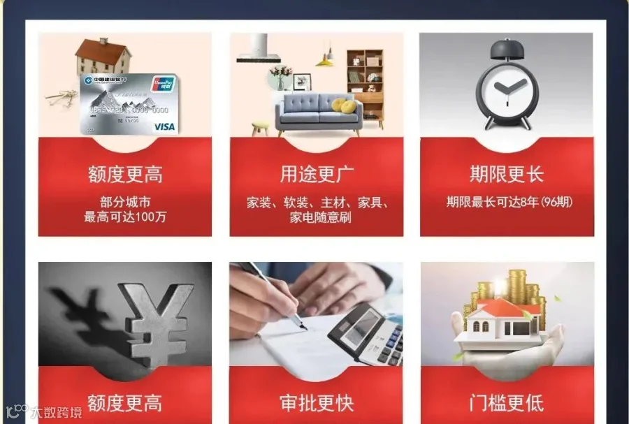 家装分期主要用于家庭装修,其范围包括:装修服务、装修材料、家具、家电等。业主借银行的钱先装修,以月供方式进行偿还。家装分期6大优势,让您把爱贷回家!