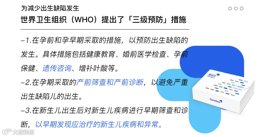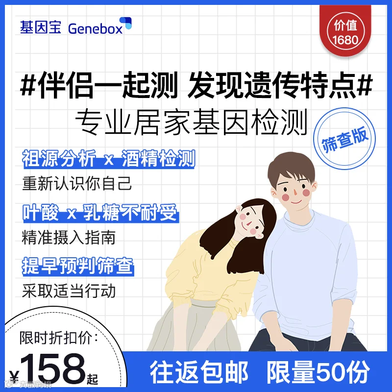 院昂贵的检测费用,基因宝Genebox 遗传疾病筛查内含 43 种遗传病变异筛查,帮助每一个家庭评估遗传风险。