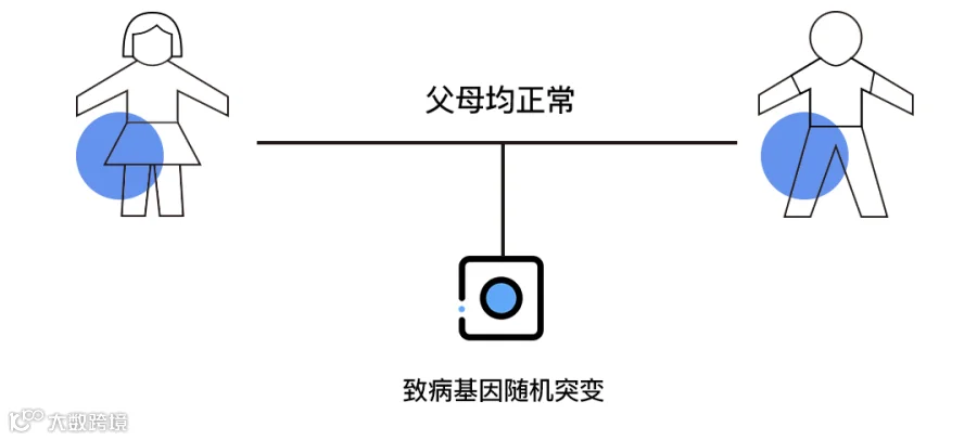也没有携带致病基因的突变,但在精子与卵子结合形成受精卵的过程中,致病基因出现了随机突变,导致下一代出现了问题。