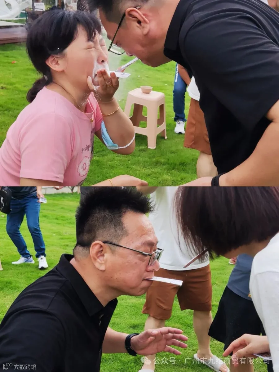 这一场比赛时,刚好赶上有风,而且还有对手的各种干扰,于是共计三轮的面粉传输比赛里,大家或技术不到家撒的比运的多,或被逗笑破功喷自己和队友一脸面粉,笑着闹着,脸上的面粉,也挡不住满面的笑意.