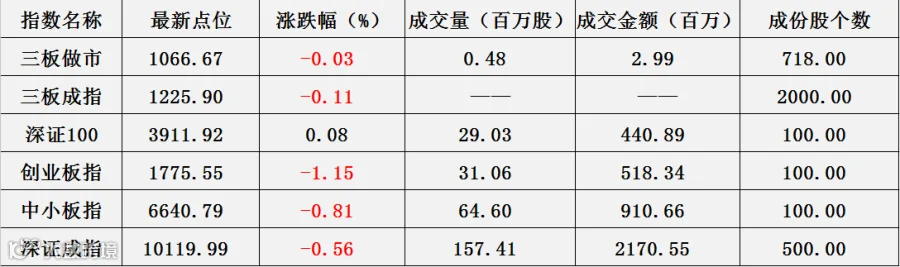 截止6月12日收盘,新三板做市指数1066.67点,较昨日下跌0.03%。三板成指1225.90点,下跌0.11%。创业板指数下跌1.15%、中小板下跌0.81%。