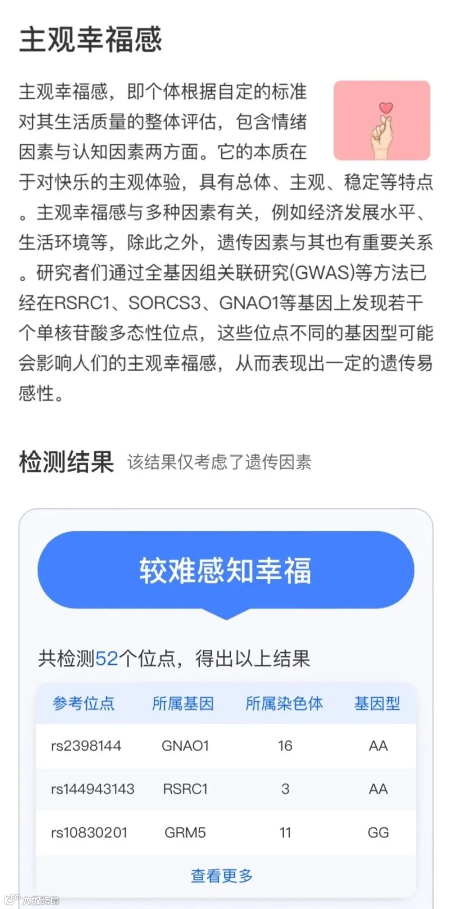 打开基因宝APP即可查看你的“主观幸福感”表型