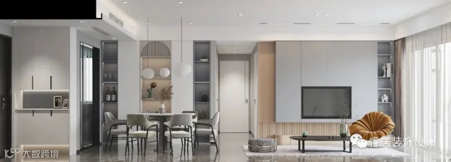 ▲餐厅与客厅隔着过道,整体黑白灰的空间基调,也是让空间显得时尚优雅好舒适。