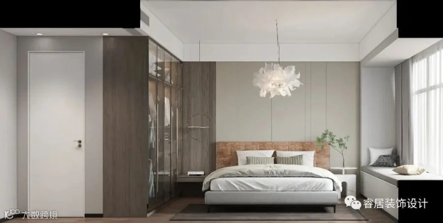 ▲卧室整体灰色调的空间,搭配了定制硬包靠背床,搭配现代舒适的床单,让空间充满了优雅温馨的舒适感。