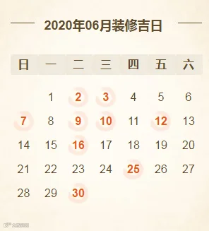 2020年6月装修开工吉日(共9天)