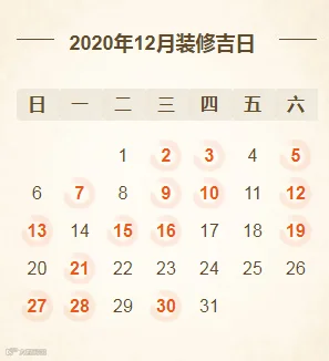 2020年12月装修开工吉日(共15天)