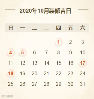 2020年10月装修开工吉日(共5天)