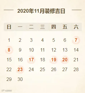 2020年11月装修开工吉日(共6天)