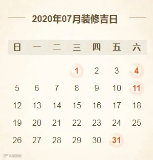 2020年7月装修开工吉日(共4天)