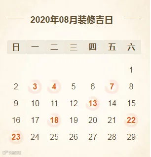 2020年8月装修开工吉日(共7天)