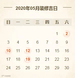 2020年5月装修开工吉日(共4天)