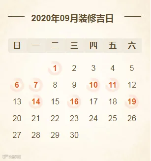 2020年9月装修开工吉日(共8天)