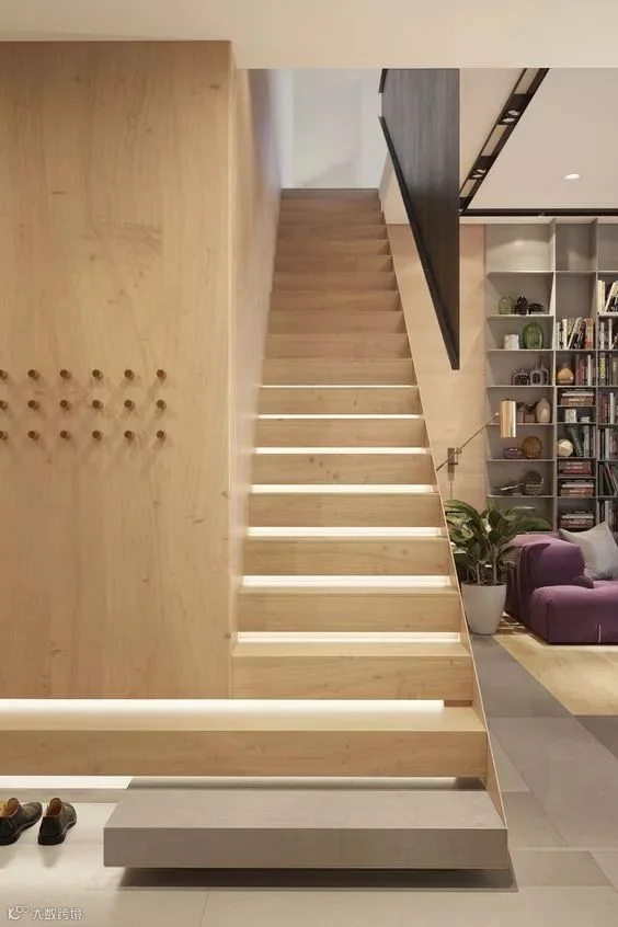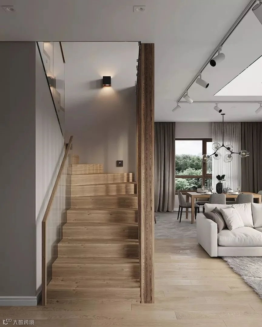 木材给人带来温暖的感觉,木质踏步的楼梯将会很百搭,同时为空间注入自然的活力,营造闲适轻松的居住氛围。