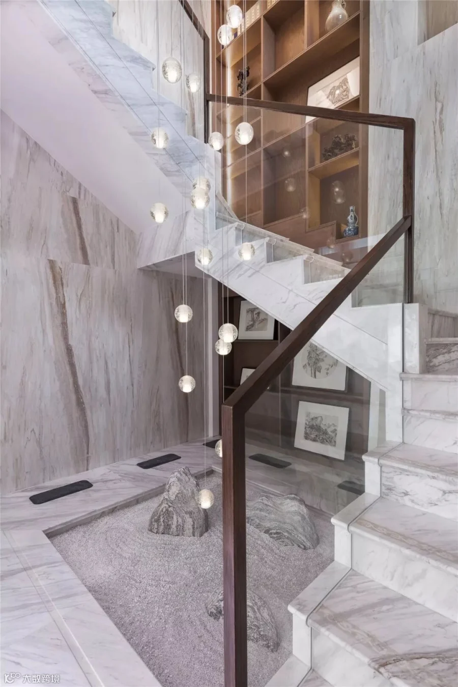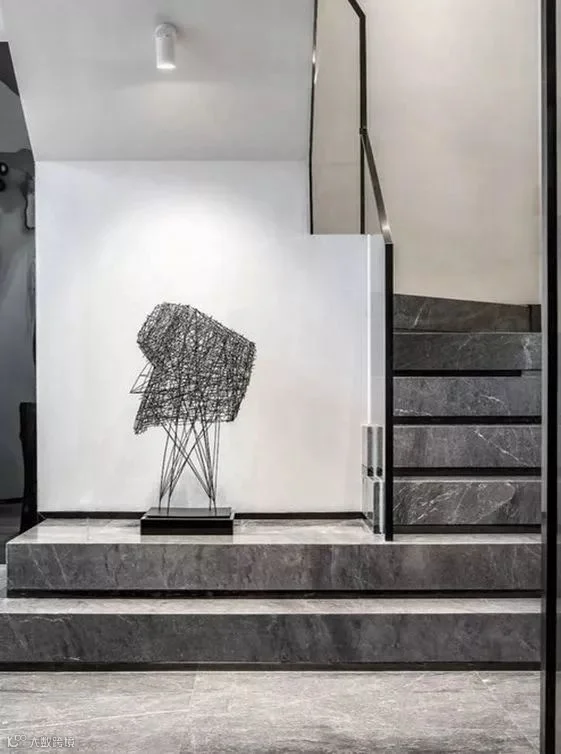 天然石材的可塑性、装饰性、持久性,相对其他材质更具优势,石头纹理踏步的楼梯更加轻奢大气,适合与地面选用一样的纹理,保持整体的统一与和谐。