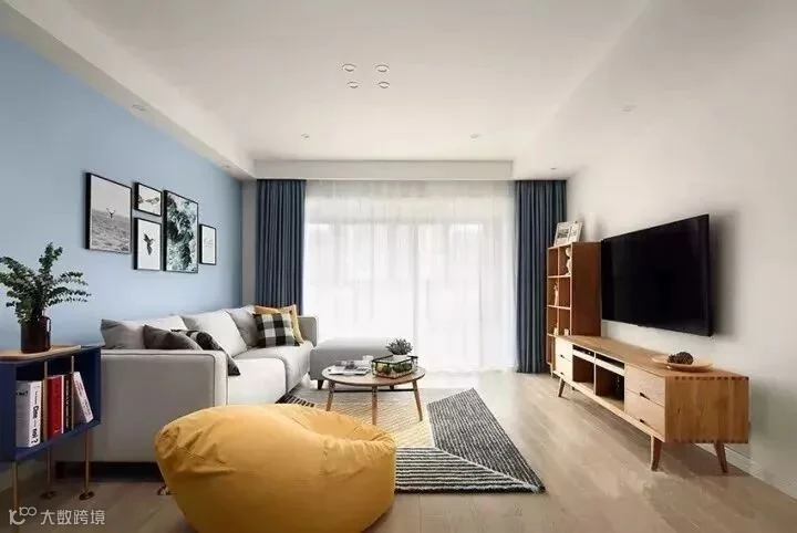 当然,最简单的电视背景墙设计就是只刷个乳胶漆,只要颜色搭配好,也能让客厅看起来非常的宽敞。