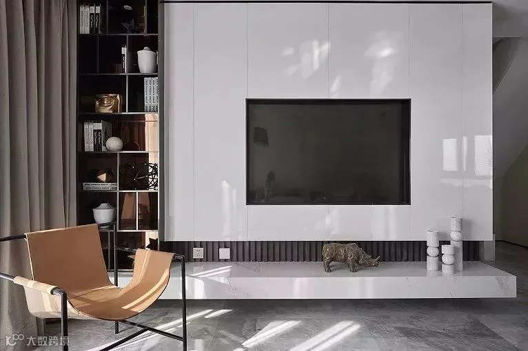 哪怕只是在大理石电视背景墙的边角处留出一部分的壁龛空间,和电视柜形成一个L型的设计,突出大理石的大气感。