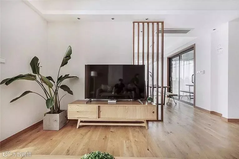 如果电视背景墙后方还有其他空间,那么小睿建议你不要把电视背景墙全部封起来,用一个木栅栏隔断来连通两个空间。