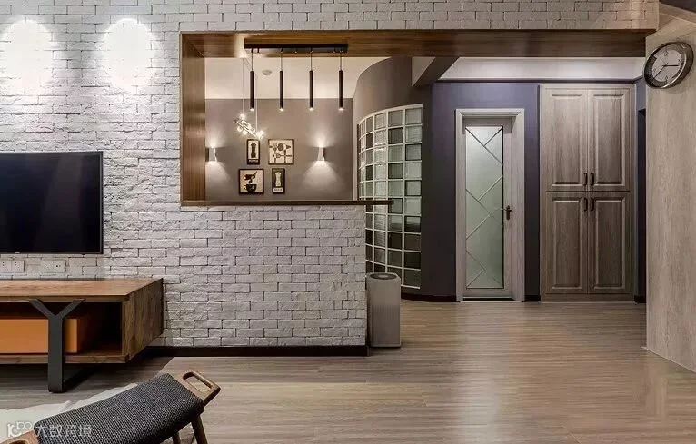 玻璃隔断也不错,只要能够让空间连通起来就行,把电视背景墙集中在电视、电视柜的小部分地方,其他地方就改成隔断吧。