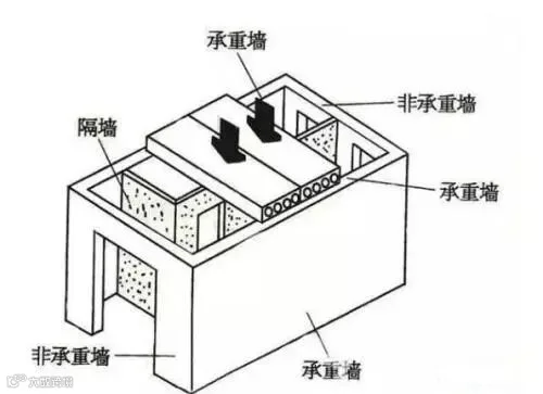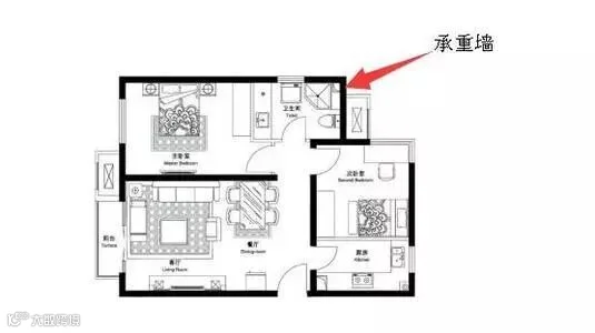 承重墙就是户型设计图上黑色部分的墙体,顾名思义起承重作用,绝对不能拆,这是装修基本原则。曾有业主不顾劝说,为了美观偷偷敲出承重墙,导致楼房坍塌。