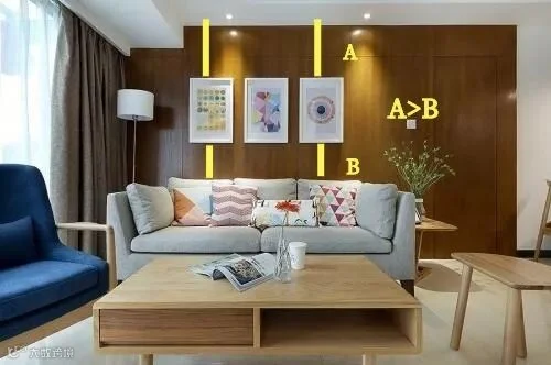 对于一副装饰画,摆放位置的重要性首当其冲。以客厅沙发 后的装饰画为例: