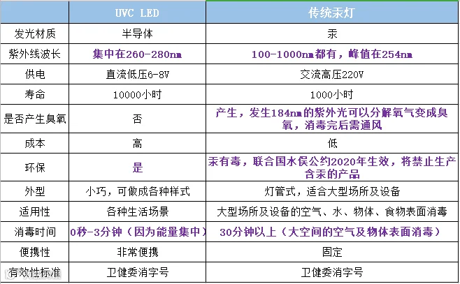 传统的紫外线灯一直采用的是水银(汞)灯发光,而汞具有非常大的危险性,是致癌物质,对人体的危害比较大,且《水俣公约》后,汞灯已被全面禁止,但UVC LED(紫外发光二极管)是通过紫外线灯达到杀菌效果的绿色技术,它是发射紫外线的高科技半导体光源。