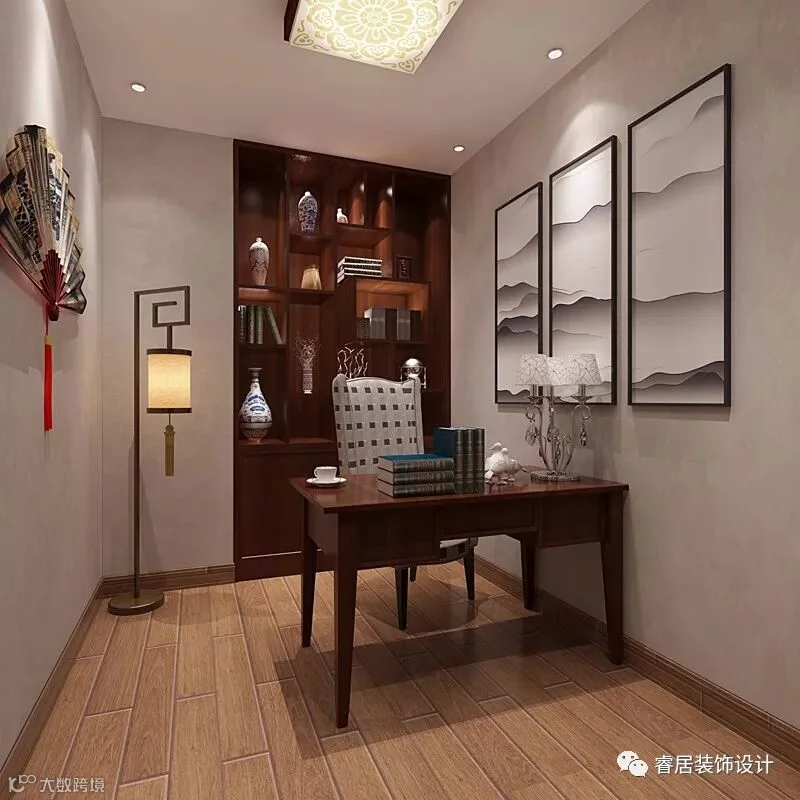 ▲书房-走进红木书房,第一个映入你眼帘的是那一方书案,一椅几,一书柜,笔墨纸砚、文房清供,整体简约但不单调,明净优雅,极具温馨。