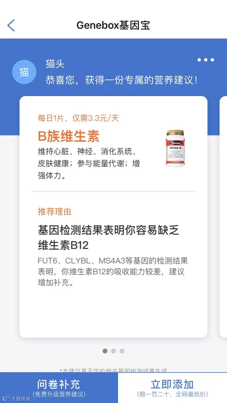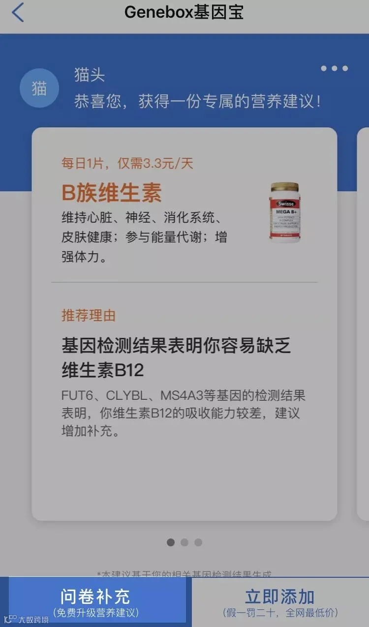 所以我们推荐营养问卷+基因检测的个性化膳食补充方案。