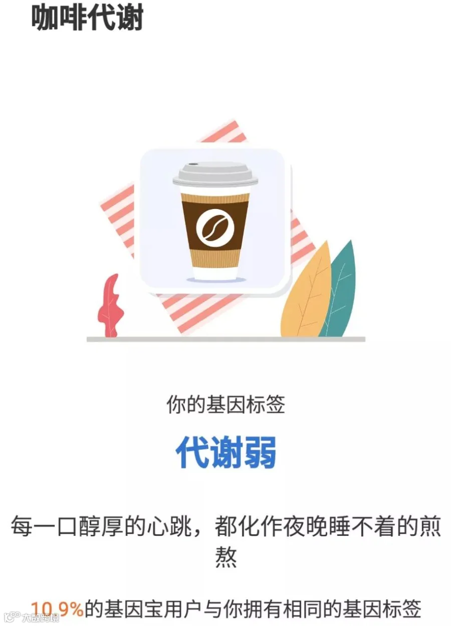 做一个基因检测,就可以帮你了解自己是否具有咖啡因代谢弱和乳糖不耐受问题,喝奶茶也可以更安心啦~
