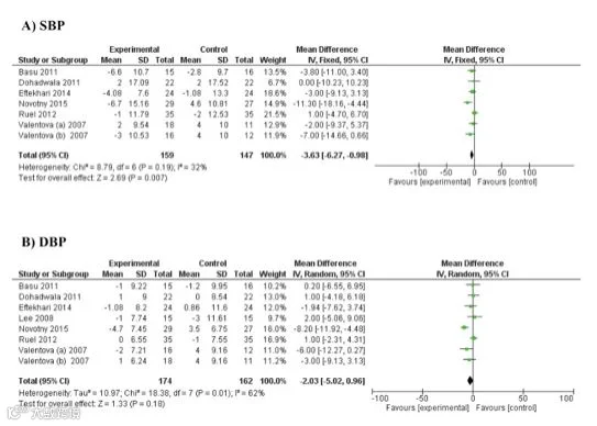 最新的荟萃分析表明蔓越莓具有降低收缩压的作用,而对于舒张压的降低效果并未达到显著性(图4)。