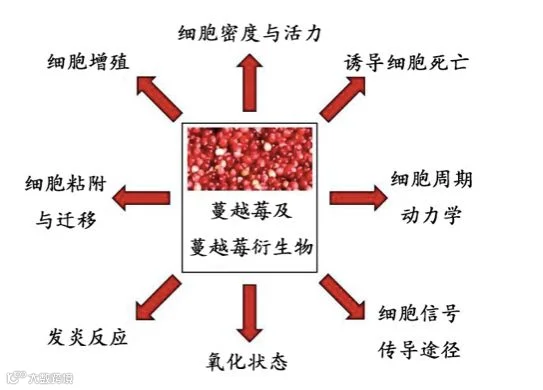 研究认为蔓越莓中的原花青素可以调节细胞活力、细胞增殖、细胞死亡、信息传导通路等(图5)。