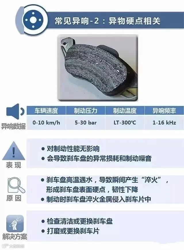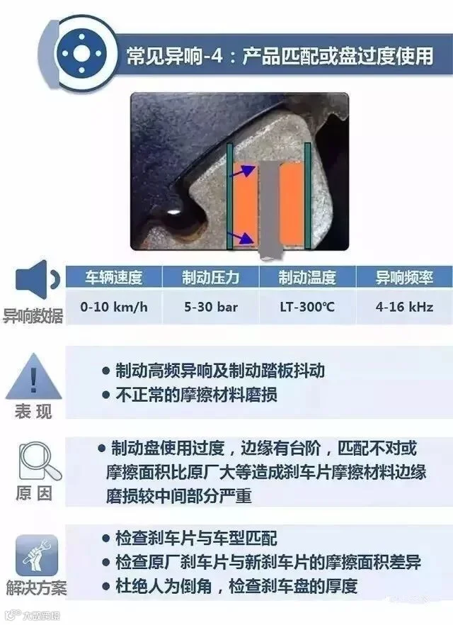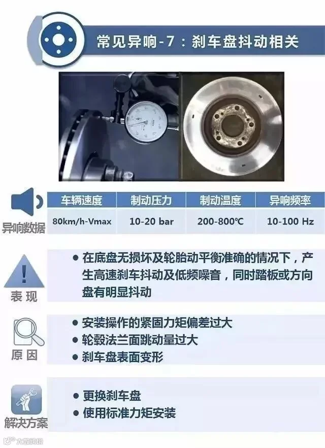 制动安装后的异响是什么原因造成的?针对不同的故障又该如何解决呢?一张图全都看懂!