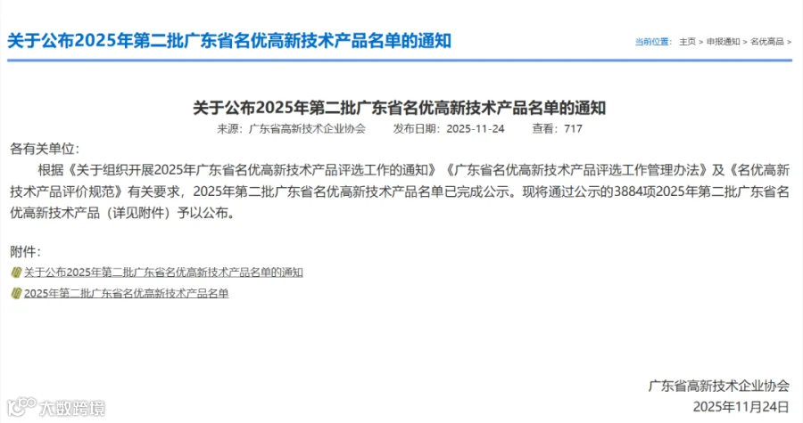 广东省名优高新技术产品名单公布