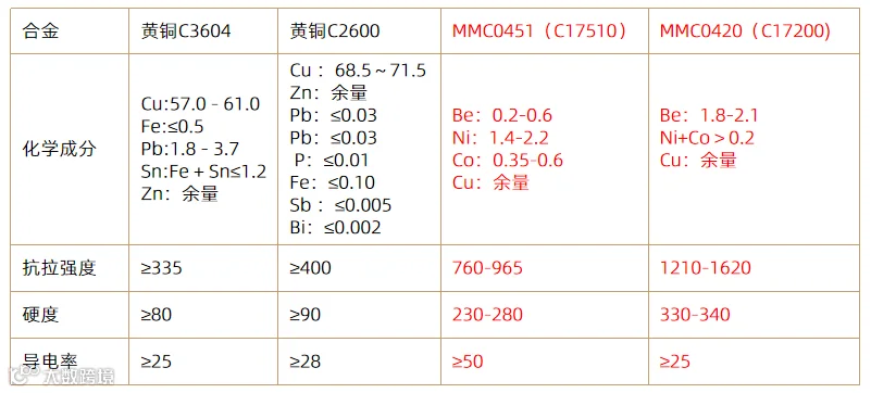 性能要求:高导电性、抗疲劳性、耐腐蚀性