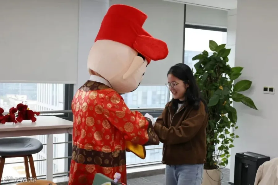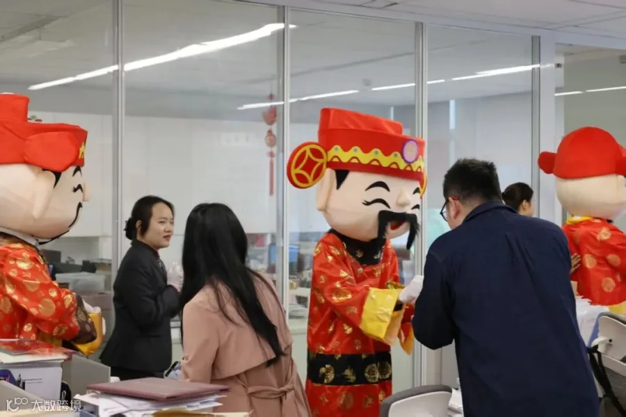 不止于园区入口的惊喜,今年的“财神送福”更添专属温情。派送完入口的甜蜜后,“财神”们带着满满的开工糖果,迈步走进园区企业办公区,将财气与福气直接送到工位。“财神”的身影所到之处,皆掀起阵阵欢乐热潮,让开工首日的办公氛围瞬间变得热闹而喜庆。