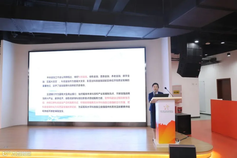 交通银行广州经济技术开发区东区支行副行长林婕君讲解特色贷款产品,为高企提供合适的贷款产品,为科技型企业提供全生命周期金融服务方案。