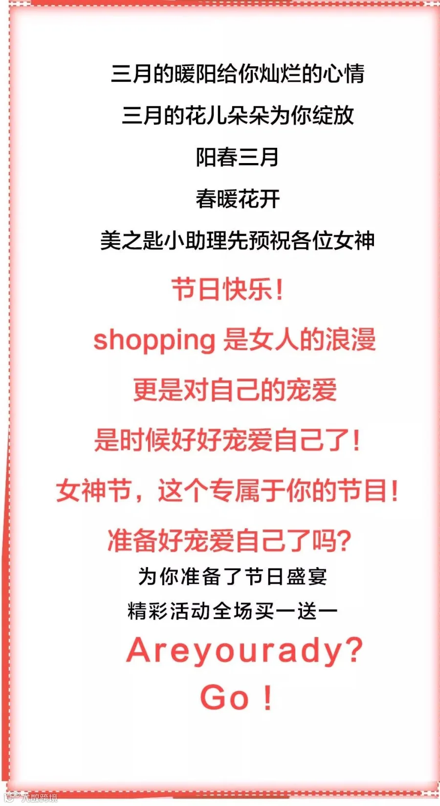 导读:三月女神节重磅活动全场买一送一,限三天
