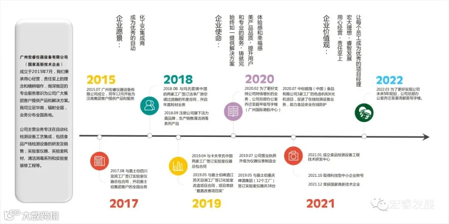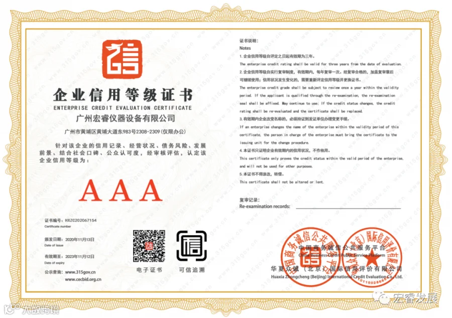 广州宏睿仪器设备有限公司成立于2015年7月,国家高新技术企业、科技型中小企业及瞪羚培育企业。公司秉承用心经营,责任至上的理念和精耕细作,做深做足的服务意识为公司广大集团客户提供产品和解决方案。我司立足华南,辐射全国,业务分布全国各地。