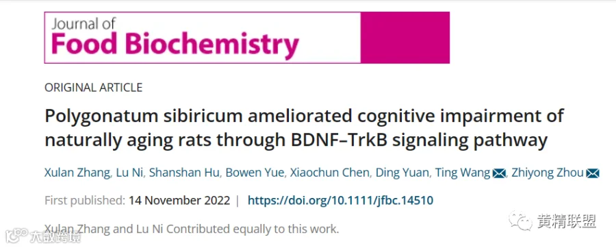 黄精(Polygonatum sibiricum,PS)是一种食药同源的药用植物,具有多糖、皂苷等多种有效成分,临床上广泛应用于治疗肺部疾病、糖尿病、抗衰老等方面。研究证实,黄精可以加速受损神经元的修复和再生,逆转突触结构的变化,提高学习和记忆能力。目前,自然衰老大鼠模型中黄精对认知功能的改善作用及其机制尚未完全阐明,对此,中国三峡大学医学院的王婷教授团队在JOURNAL OF FOOD BIOCHEMISTRY(分区Q3, IF:3.7)期刊上发表了题为“Polygonatum sibiricum ameliorated cognitive impairment of naturally aging rats through BDNF– TrkB signaling pathway”的研究论文。
