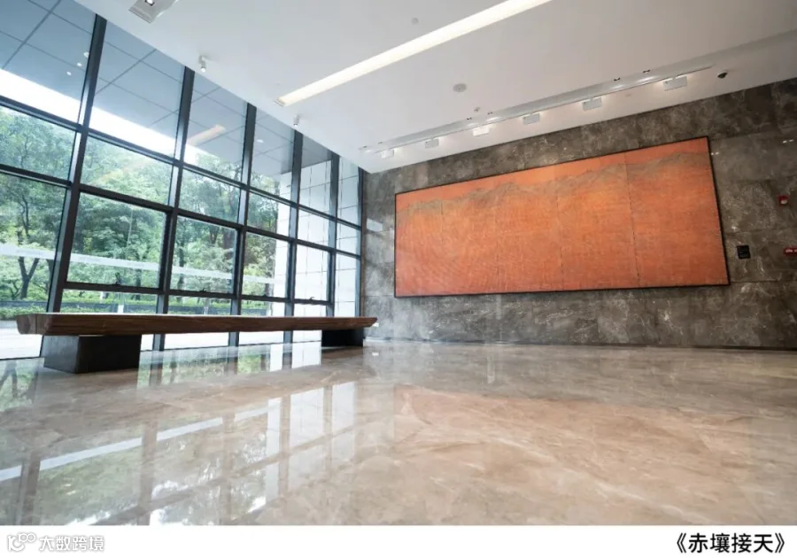 广州芯大厦将目光投向广阔的自然,从红、绿、蓝三原色入手,通过《赤壤接天》、《大道无界》和《心水润生》为产业空间绘色,探索人与自然、科技与艺术的亲密连接。