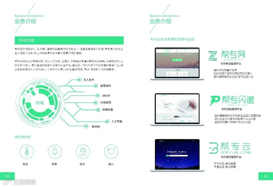 帮专网自成立以来,已累计开发和运行了多个知识产权服务平台,如用于专利申请管理的帮专网(www.bzwip.com),用于流程监控与管理的帮专闪递(www.iprdj.com),和用于专利费用监控、通知和线上缴费的帮专云(www.ipryun.com)等,这些平台之间均已实现了互通,达到了专利从立案到监控、维护、运营的全生命周期的管理。此外,帮专网也在企业知识产权管理、科技项目管理等知识产权相关领域均进行了平台的研发与运营工作。