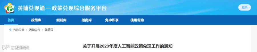 本次政策兑现涉及人工智能政策兑现的有人工智能示范应用项目奖励等7个事项,相关办事指南以黄埔兑现通—政策兑现综合服务平台(即原“区政策兑现服务系统”,网址:http://zcdx.gdd.gov.cn,下同)公布的指南为准。有关情况说明如下: