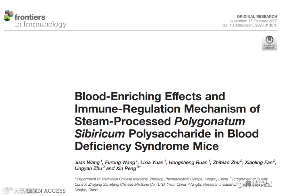 本研究验证了黄精多糖作为一种免疫调节剂预防和治疗血虚,并为黄精在营养健康行业的应用和发展提供了理论依据。