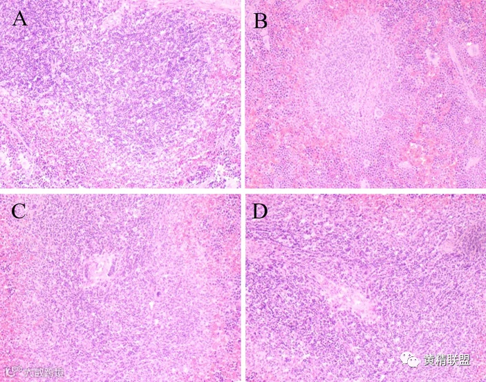 图4 SPSP对脾脏组织病理学变化的影响。SPSP处理14天后,用image Pro-Plus 7200软件分析脾脏的组织病理学变化。样品进行HE染色,并在200倍放大倍数下观察。(A) 正常对照组;(B) BDS模型组;(C) L-SPSP(0.1g/kg)组;(D) H-SPSP(0.4g/kg)组
