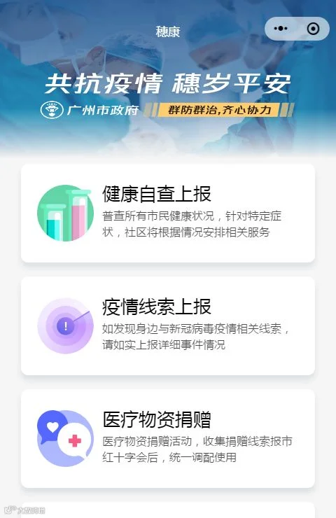 关注本公众号“微社区e家通智慧联和”,点开菜单【微呼应】-【穗康】,进入穗康”小程序,填写“健康自查上报”。